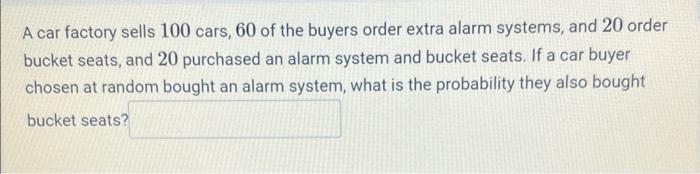 Solved A Car Factory Sells 100 Cars 60 Of The Buyers Order Chegg Com